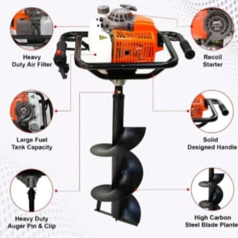 సమర్థవంతమైన హెవీ డ్యూటీ ఆగర్-అధిక-పనితీరు గల బలమైన అప్డేటెడ్ స్టీల్ ఫ్రేమ్, మన్నికైన గేర్ బాక్స్, సింగిల్ మ్యాన్ ఆపరేట్ చేయడానికి అనువైనది, ఈ 2 స్ట్రోక్ ఇంజిన్ బలమైన గ్యాసోలిన్ ఎర్త్ ఆగర్ 63 సిసి గుంతలు మరియు ఇతర వ్యవసాయ లేదా పారిశ్రామికాల సమయంలో వేగవంతమైన ఆగర్ స్పీడ్ మరియు అధిక సామర్థ్యాన్ని కలిగి ఉంది.